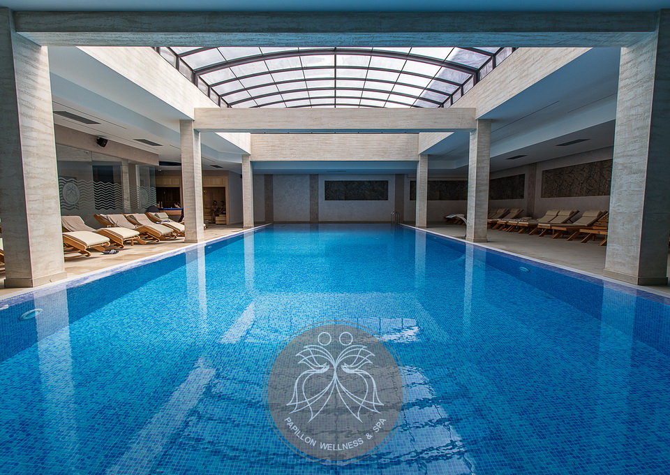 Prostrani, topli bazen temperature 29 °C dimenzija 20 x 7 x 1.55 m.